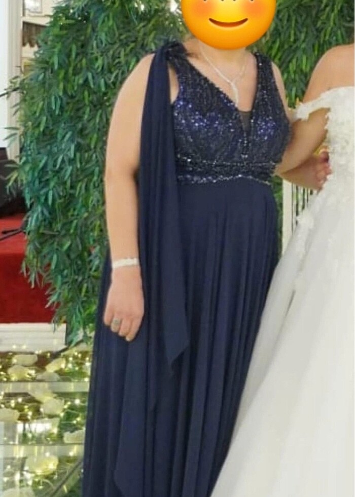 Lacivert taşlı uzun abiye