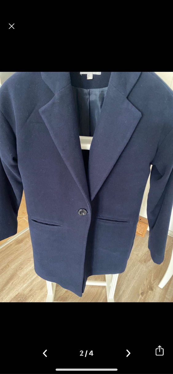 Lacivert renginde, tek düğmeli, ön cepli ve astarlı kaban. Klasik kesimi ile şık bir görünüm sunar.