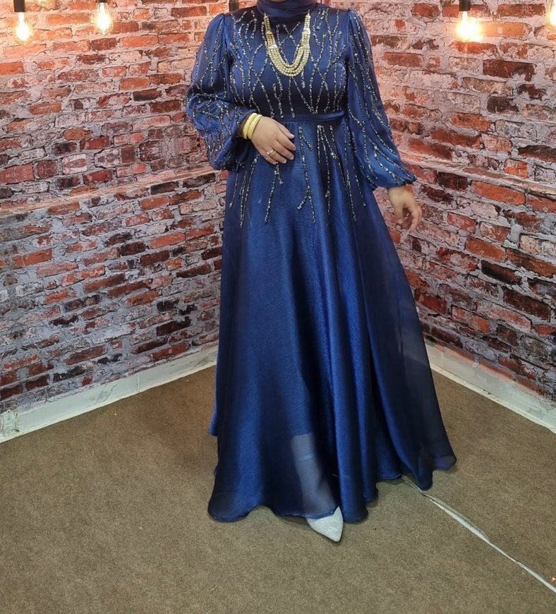 Lacivert simli tesettür abiye sadece bir kere giyildi kusur yoktur