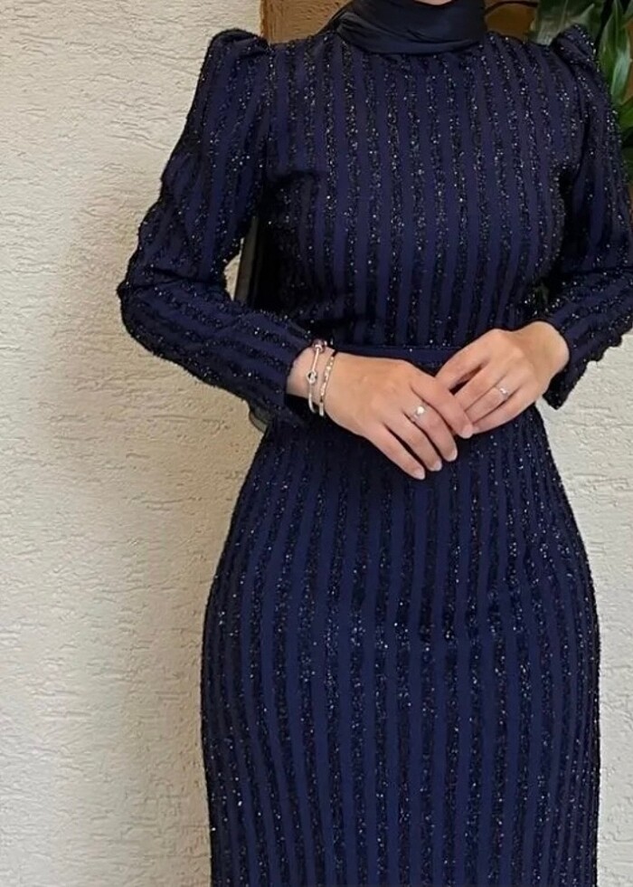 Lacivert tesettür abiye elbise 3 kez kullanıldı astarsız
