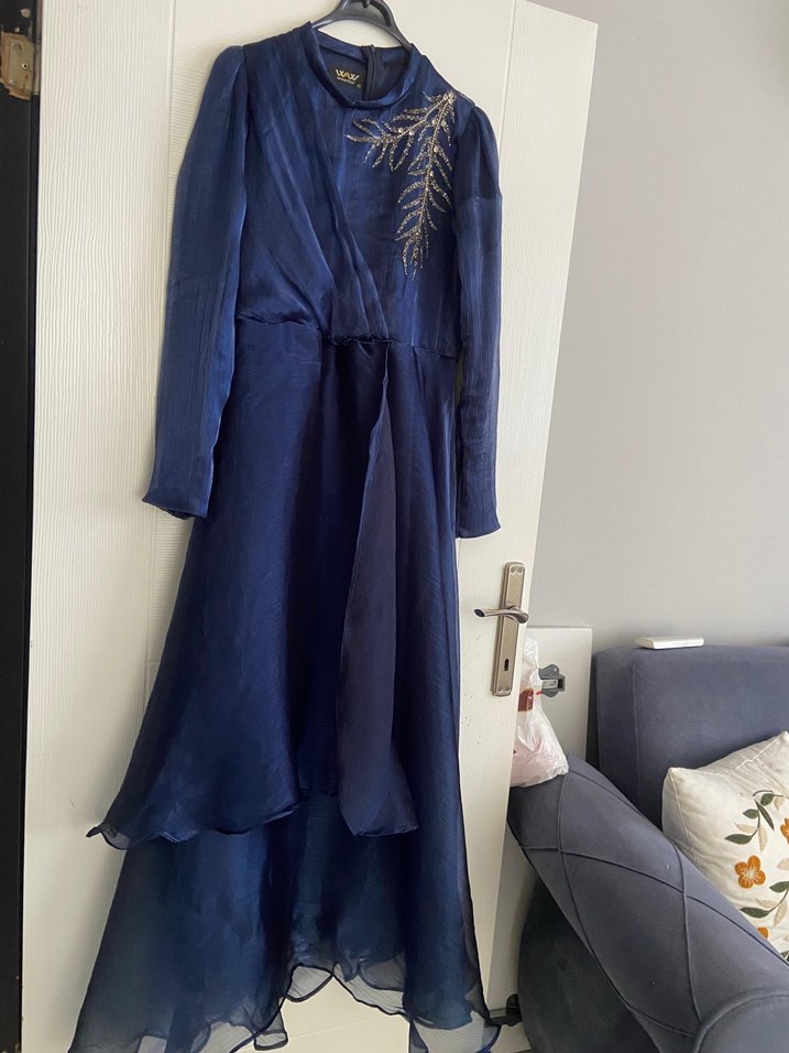 Elbisenin tül ve taş detayları bulunmaktadır.Yalnız 1 defa kullanılmıştır,elbisenin birkaç yerinde DİKİŞ var ve 42 beden.
