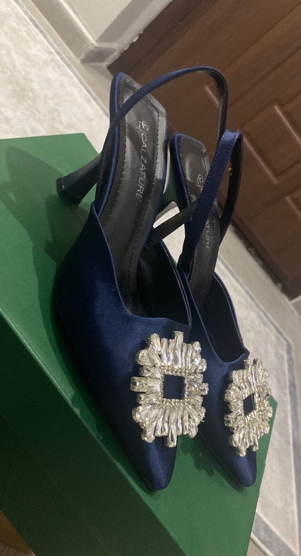 Lacivert Tokalı Topuklu Abiye Ayakkabı