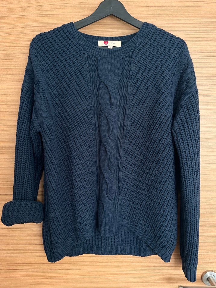 Salaş lacivert örgü detaylı kazak