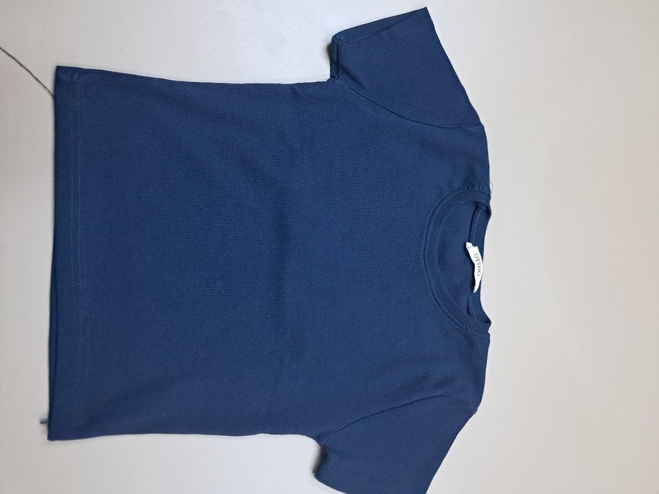 Yumuşak kumaştan yapılmış, lacivert renkli, desensiz tshirt.