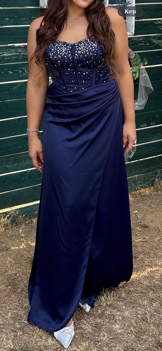 DORİDORCA markalı , drapeli, vücuda oturan, lacivert uzun abiye elbise. Normalde straplez bir elbise, son görselde sunduğum gibi sonradan ekstra kol eklettim (çıkarılabilir) 48 bedene kadar uyumlu. Hiç bir sorunu yok. Ağustos ayında 11.000 ₺ ye aldım. Sadece 2 kere kullandım. Fiyatta yardımcı olmaya çalışırım.