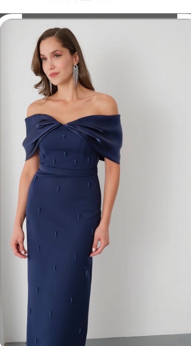 Lacivert uzun abiye elbise bir kez giyildi 44 beden fakat arkası ipli ve fermuarlı 42-44-46 beden aralığına olur