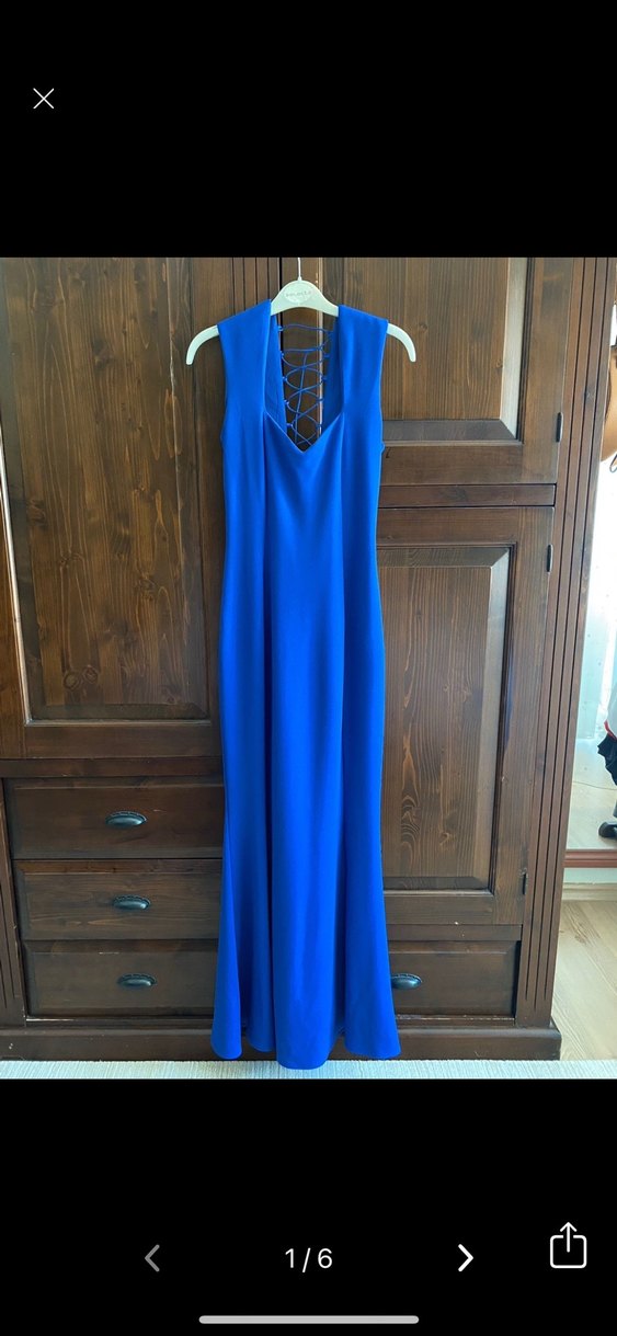 Lacivert, uzun ve drapeli bu abiye elbise, V yaka ve ince askılı tasarımıyla klasik ve modern bir şıklık sunar. Romantik akşamlar için uygundur.