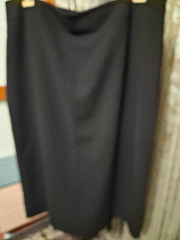 Kadınlar için, siyah, uzun, drapeli tasarıma sahip, ipeksi kumaştan yapılmış klasik ve şık bir ofis eteği. Günlük, gezmelik, şık bir etek. az kullanıldı. Garni marka, 54.B.