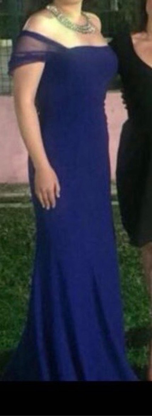 Lacivert Uzun Drapeli Kadın Abiye Elbise