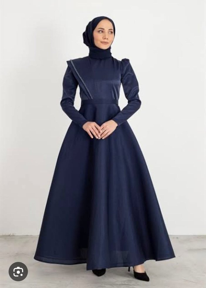 Lacivert Uzun Drapeli Kadın Elbise