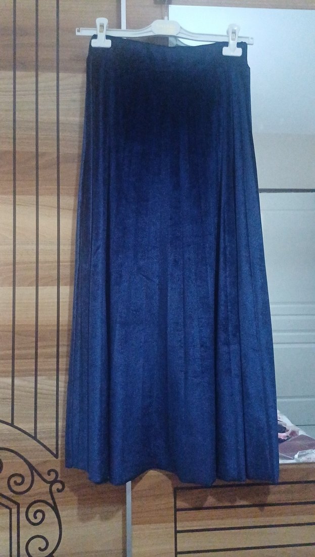 Lacivert uzun etek, drapeli tasarımı ve bol kesimiyle yumuşak ve sıcak kumaştan üretilmiştir. Düz ve bohem tarzı, günlük kullanıma uygundur. sorunsuz, beli lastikli