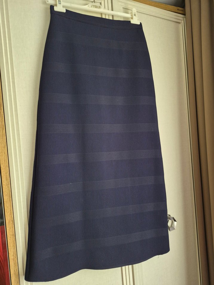 ♡Lacivert renk, yırtmaçlı ve kendinden desenli uzun etek. Sentetik kumaştan, normal kesim ve ofis tarzına uygun normcore stilde. ♡ Bir iki defa kullanıldı. ♡ A kesimdir. ♡Yırtmacı kapalı şekilde.