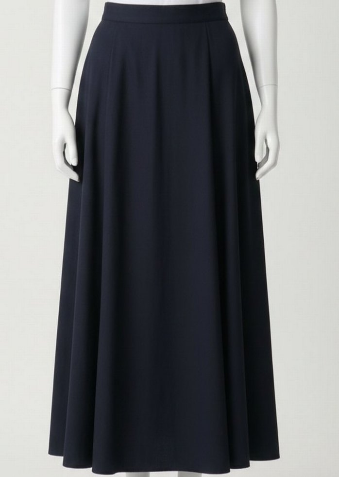 Lacivert renkte, pamuklu sentetik karışımı kumaştan 3 parça kloşa yakın bol kesimli uzun kadın eteği. yapısıyla klasik ve zarif bir görünüm sunar.