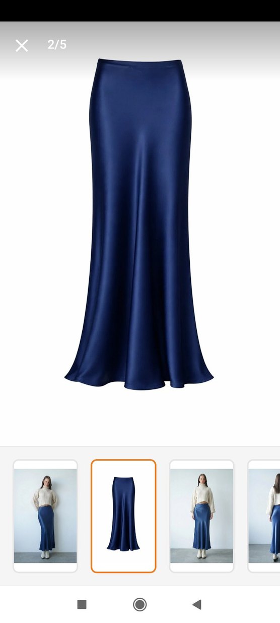 Parlak, drapeli kumaştan, klasik şıklığa uygun, dar kesim lacivert uzun etek. Romantik akşamlar için ideal.