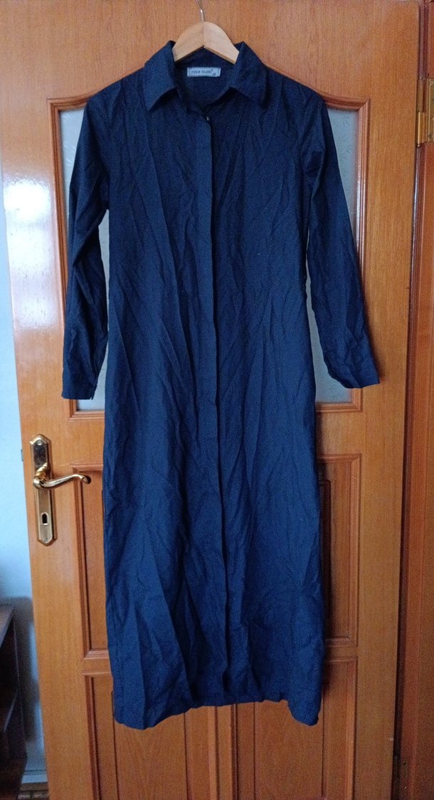 Lacivert uzun kkadın gömlek, drapeli ve notched yaka detaylıdır. Bol kesim ve uzun kolludur, günlük kullanıma uygundur.