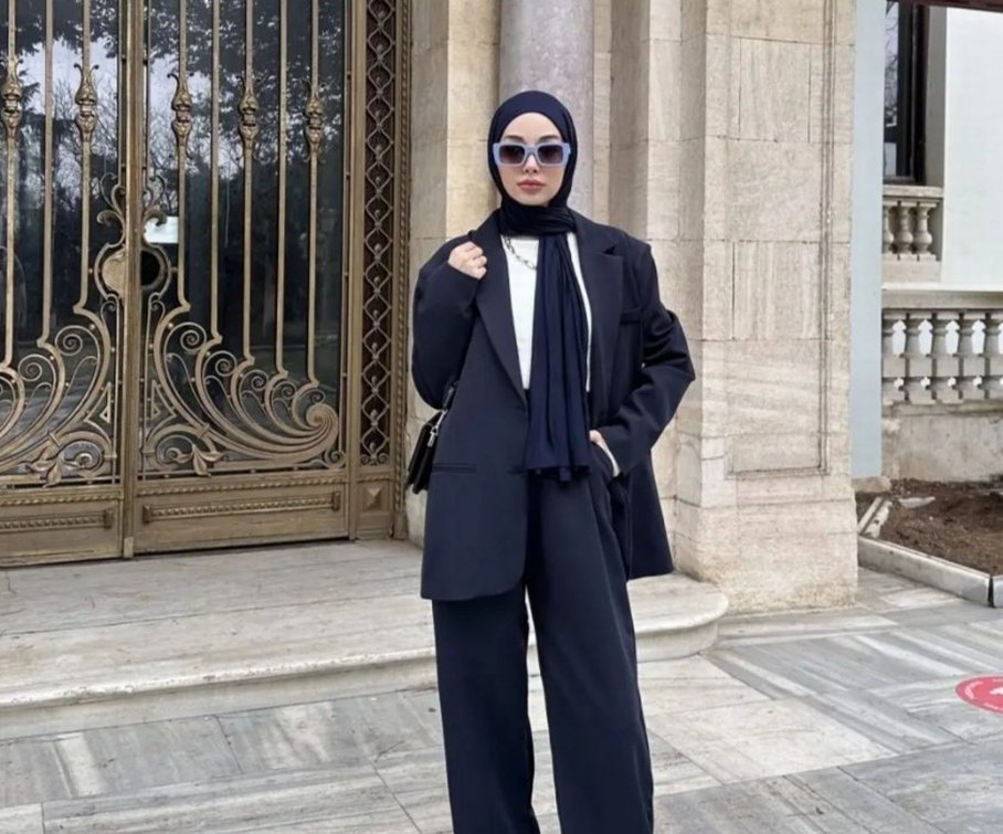 lacivert renkte, uzun kesim ve çıtalı yaka detaylı kadın ceket Sentetik kumaştan, rahat kesim ve uzun kolludur. Ofis için uygun, sade ve şık görünümlüdür.
