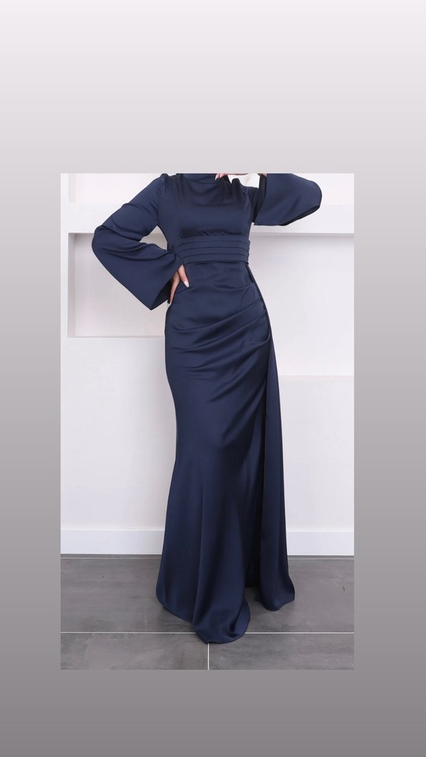 1 kez giyildi sadece Lacivert renkte, uzun kollu ve yüksek yakalı, drapeli tasarıma sahip uzun abiye elbisedir. Düzenli kesimi ve parlak dokusuyla minimalist ve çağdaş bir tarz sunar. ✨