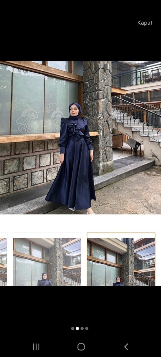 Lacivert Uzun Kol Robalı Salaş Elbise
