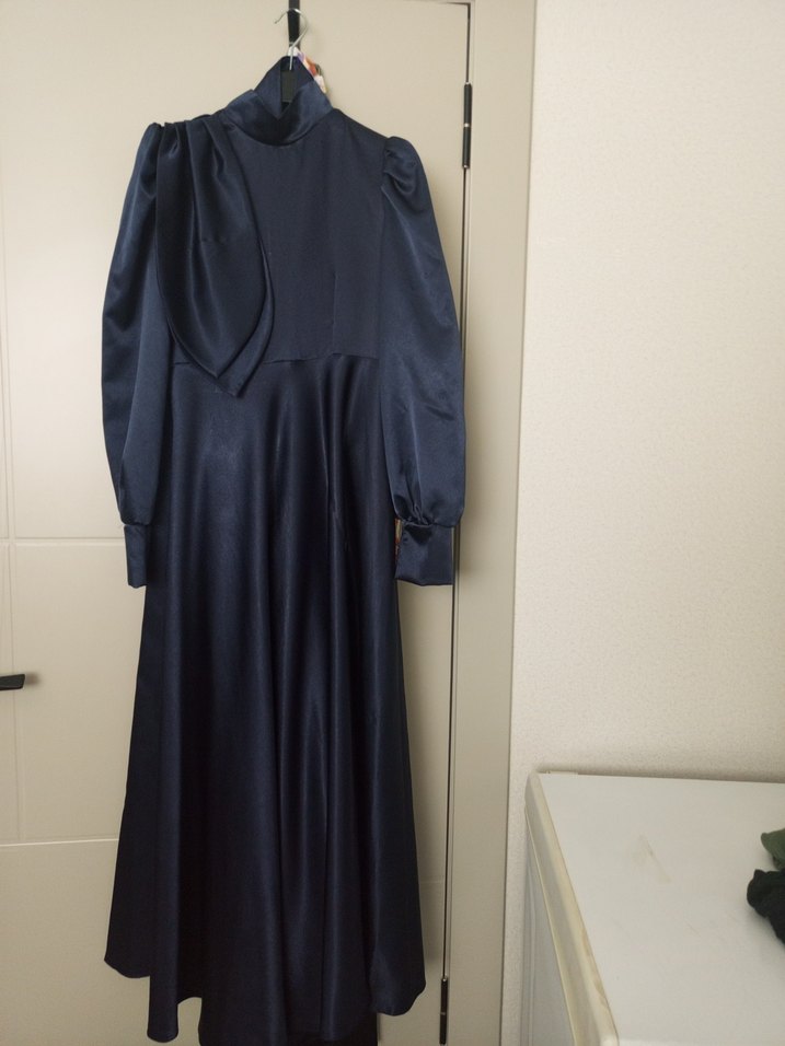 Lacivert, yakalı abi'ye elbise sadece bi kere giyildi bı yerinde delık mevcut gıyılmeue engel değil görünmeyecek şekilde