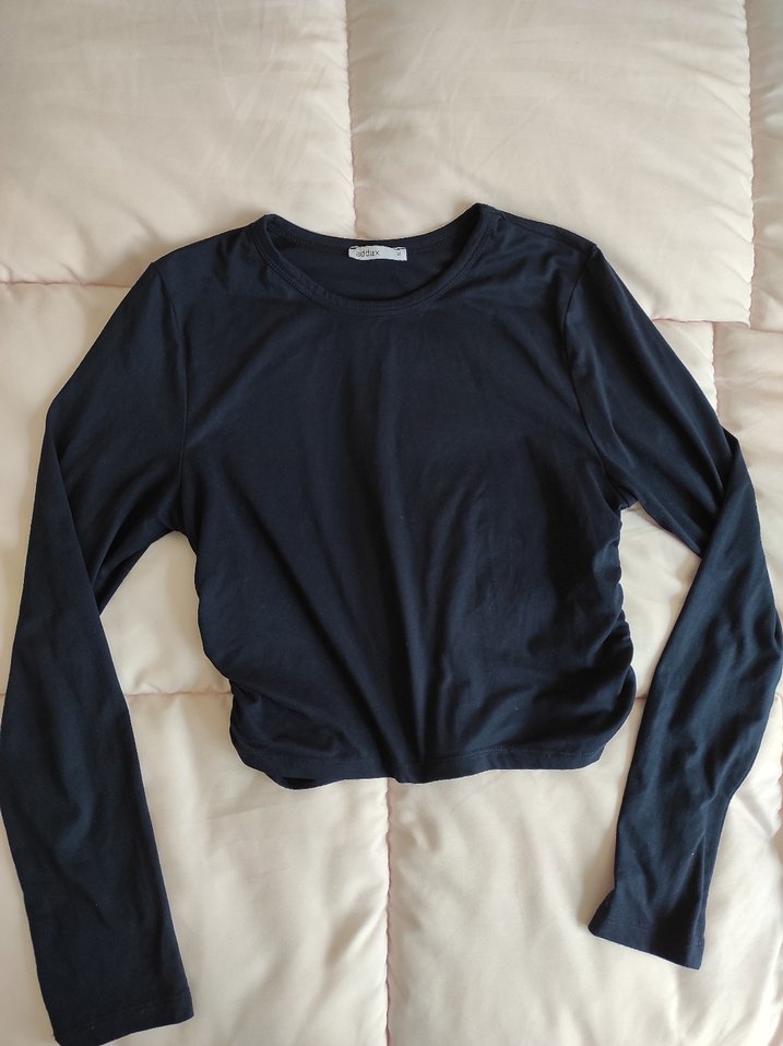 Siyah, uzun kollu ve bisiklet yaka olan bu bluz, keten kumaştan üretilmiş, sade ve şık bir görünüme sahiptir.