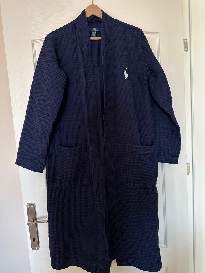 Lacivert uzun kollu kadın bornoz, rahat kalıp ve cep detaylarıyla günlük sokak stili için uygundur. Desensiz ve konforlu dokusu vardır. Orjinaldir kuşağı kayıptır