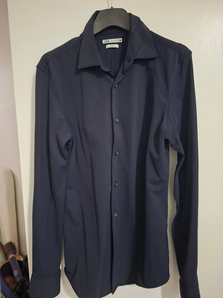 Lacivert renkli, uzun kollu ve düğmeli erkek gömleği. Notch yakalı ve normal boyda, düz kesim. Ofis ve günlük kullanım için uygun.