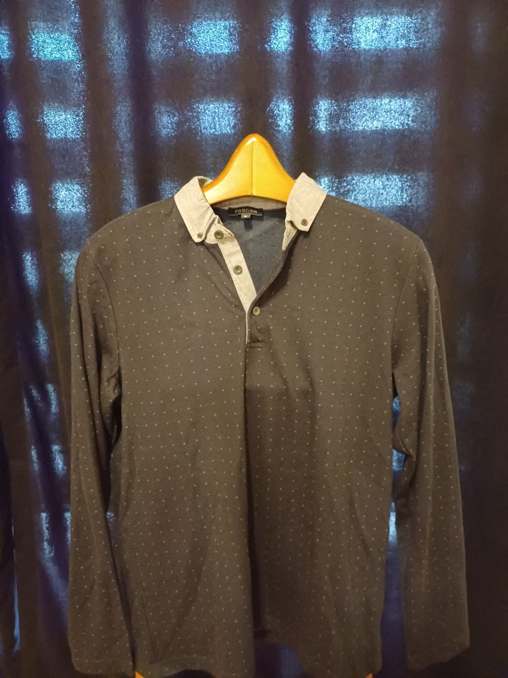 Lacivert renk, yakalı ve düğmeli uzun kollu erkek polo yaka. Rahat kesim ve normal uzunlukta, yumuşak sentetik kumaştan üretilmiştir.