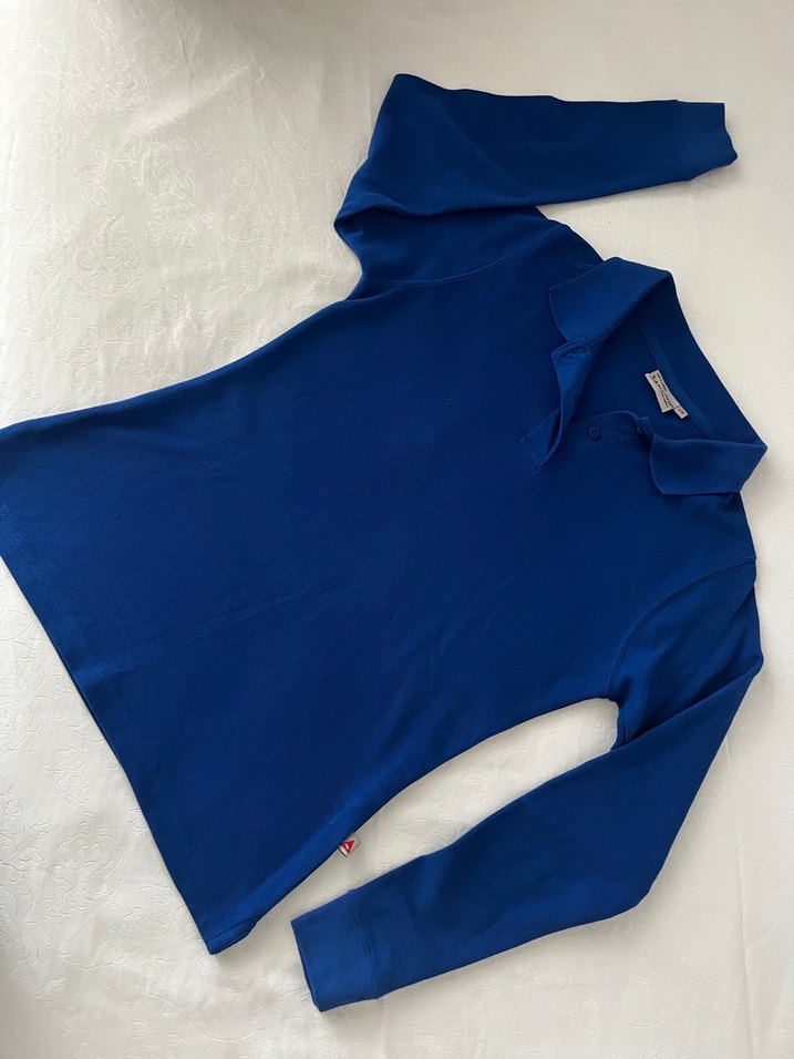 Lacivert renkte, uzun kollu ve yakalı, düz desenli, rahat ve sıcak kumaştan yapılmış fitted hamile tişörtü. Günlük kullanıma uygun, streetwear tarzında.