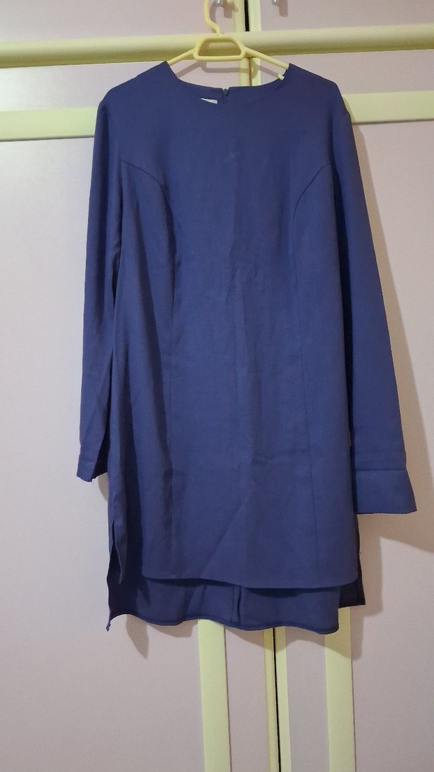 Lacivert keten kumaştan uzun kollu, yüksek yakalı ve dökümlü uzun tunik. Ofis kullanımı için uygundur. kaliteli kumaşı vardır bi kaç kez giyildi hiç bir sorunu yokdur