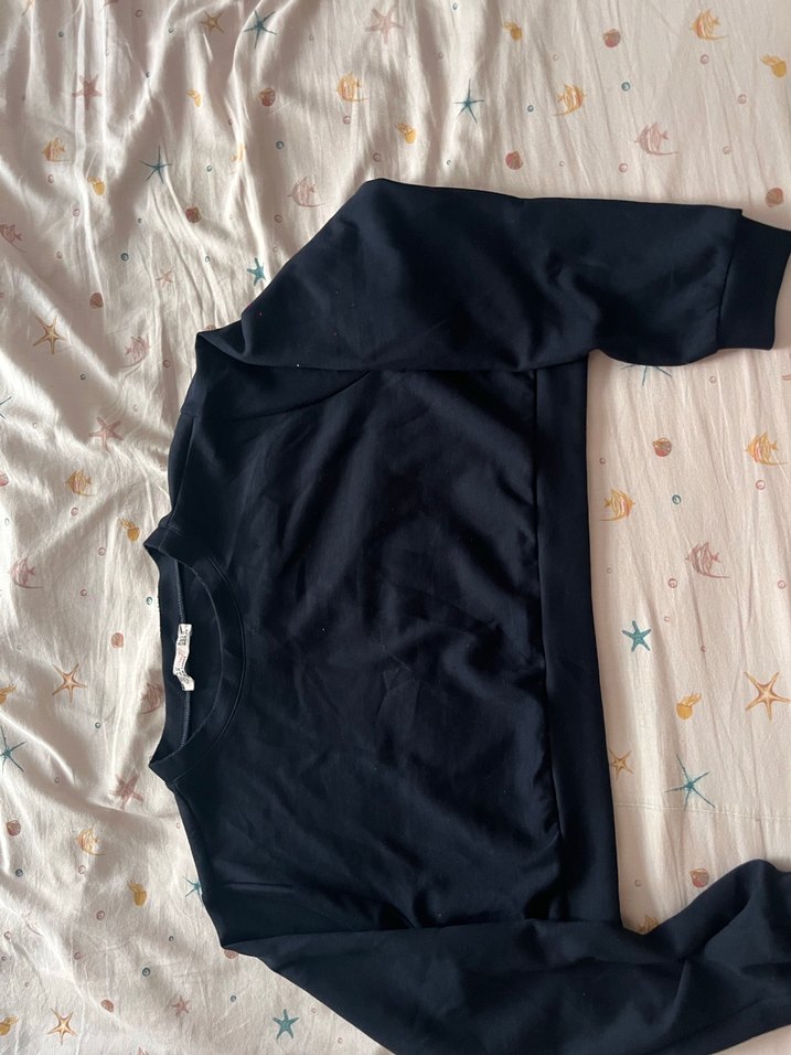 Düğmeli, uzun kollu, bisiklet yaka siyah kadın sweatshirt. Düz, şık ve rahat sentetik kumaştan üretilmiştir.