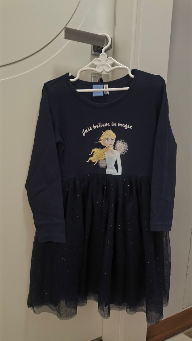 Siyah renkte, uzun kollu ve yuvarlak yakalı kız elbisesi. Üzerinde parlak detaylı baskı ve bol kesim bulunur. Trendy gotik tarzda, sentetik kumaştan üretilmiştir. ✨