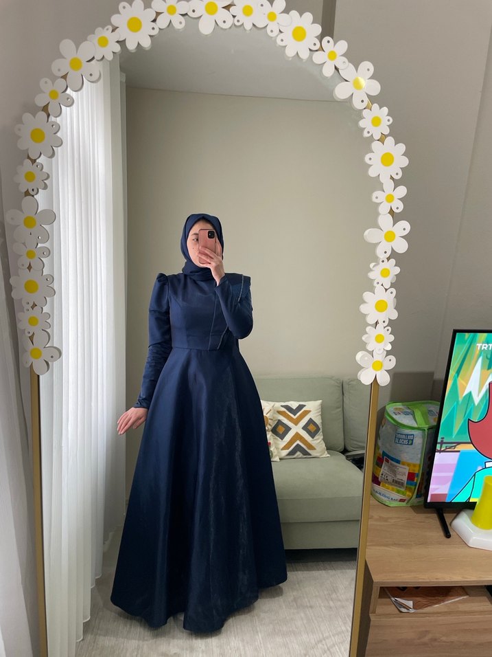 Lacivert Uzun Kollu Modern Klasik Tesettür Abiye