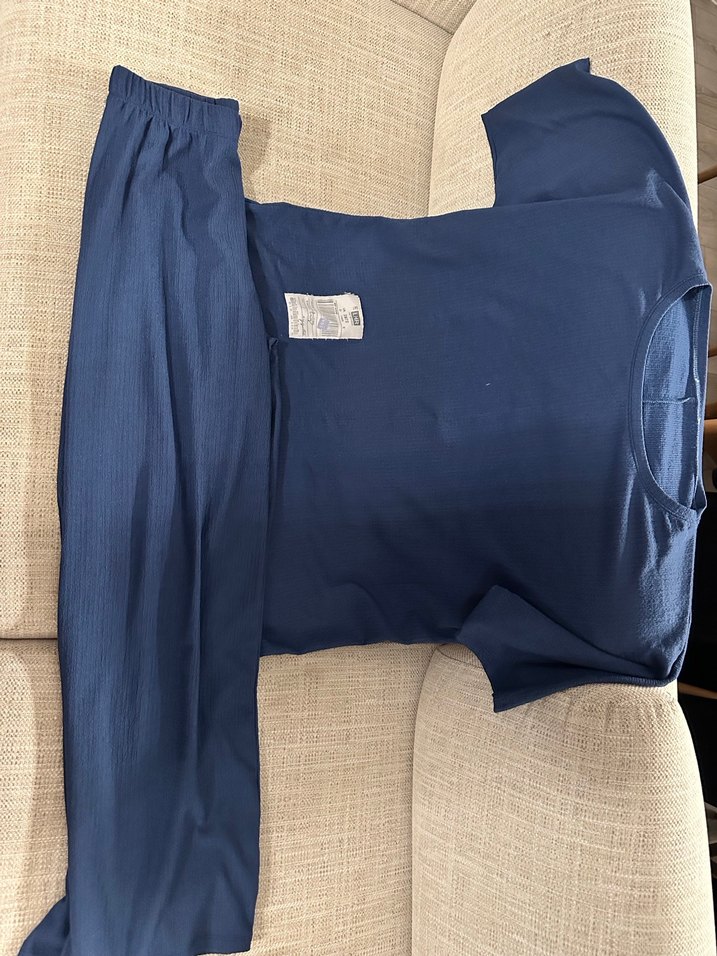 Lacivert renkte, uzun kollu, bisiklet yaka üst ve normal boy pantolonlardan oluşan e pijama takımı. Rahat ve sade tasarımıyla konfor sağlar.