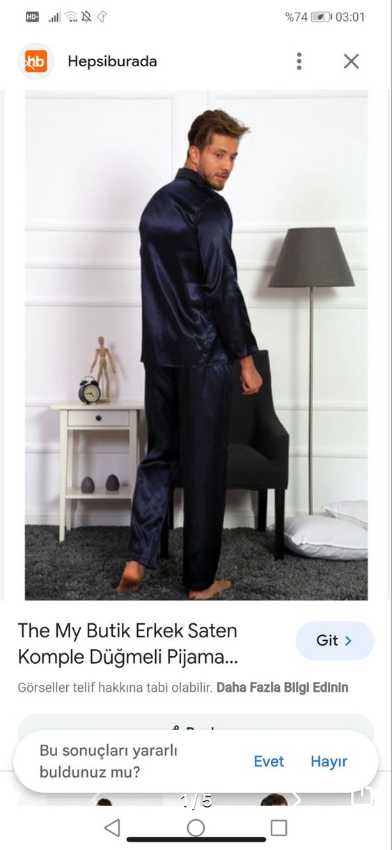 Lacivert renkli, uzun kollu ve komple düğmeli erkek saten pijama, rahat bir kesim ve şık parlak dokuya sahiptir. Etiketi yok ama kullanılmadı
