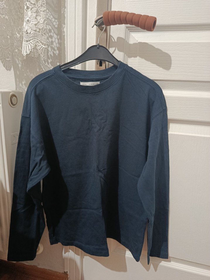 Lacivert sweatshirt, uzun kollu ve yuvarlak yaka tasarımıyla rahat bir kesim sunar. Yumuşak kumaştan üretilmiş, minimalist ve şık bir gündelik stil sağlar.
