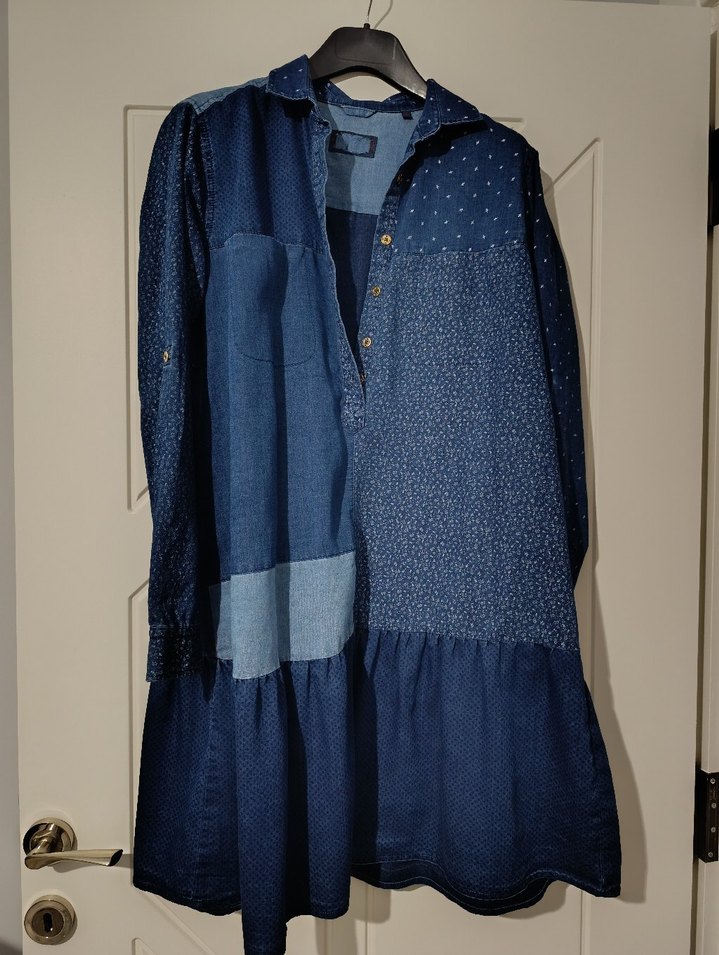 Lacivert renkte, düğmeli, uzun kollu, bol kesim tunik. Denim kumaştan, bohem tarzda, günlük rahat kullanım için uygundur.