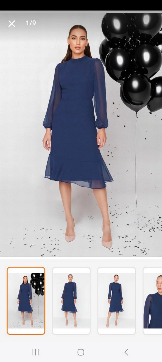 Lacivert uzun kollu, V yaka ve drapeli tasarıma sahip, klasik şıklıkta ofis için uygun uzun elbise.