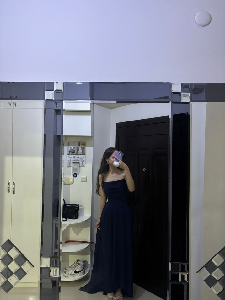lacivert Uzun Straplez abiye
