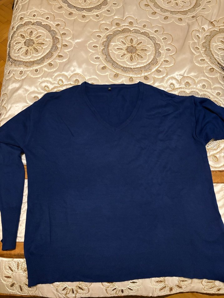 Lacivert renk, V yaka, uzun kollu, pamuklu ve örme yapıdaki salaş kesim triko kazak. Günlük kullanıma uygun, sade ve rahat tarzda.
