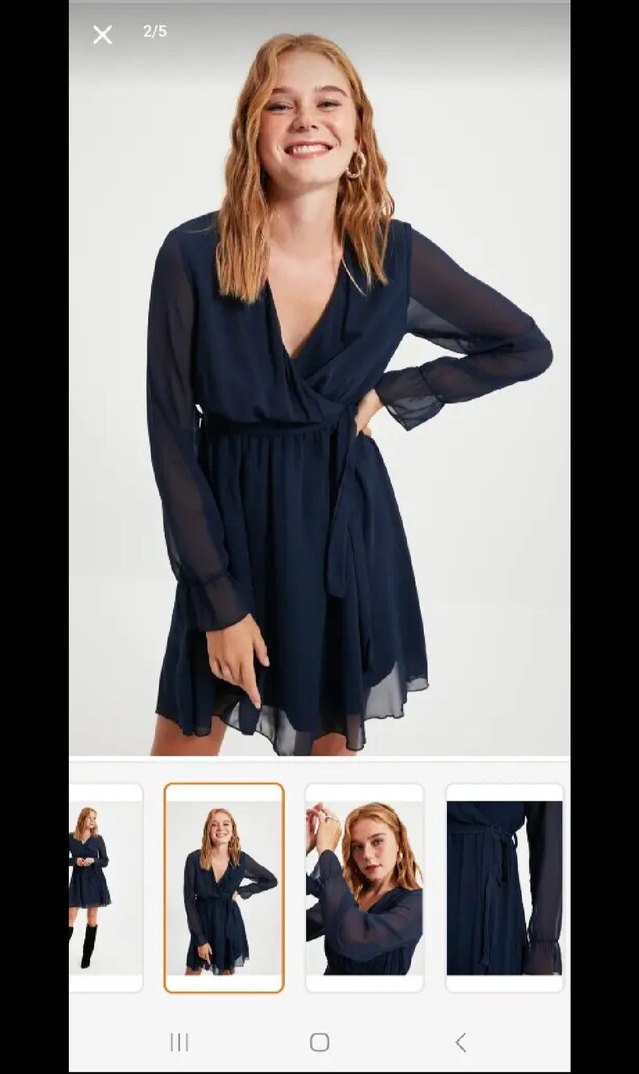 Lacivert mini elbise, uzun transparan kollar, romantik akşamlar için uygun. 1 kere giyildi. trendyol milla marka