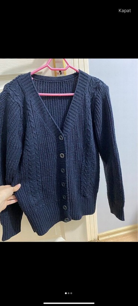 Lacivert renkli, V yaka, uzun kollu, örgü dokulu, bol kesim midi boy hırka. Rahat ve sade normcore tarzına uygun.