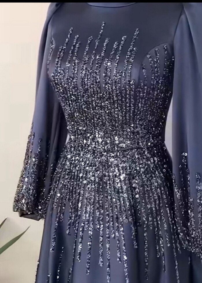 Boncuk detaylı uzun abiye bir kere giyildi yeni gibi hiç bir deforması yok boyu düzeltildi