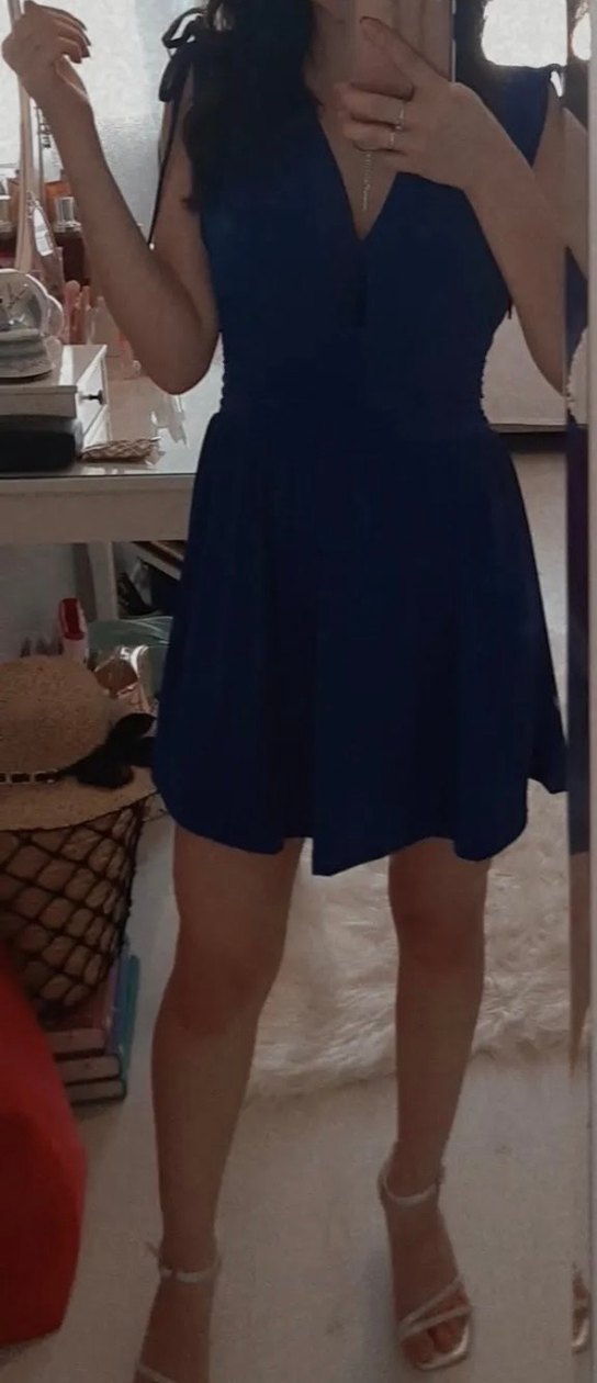 Lacivert V Yaka Pilili Midi Elbise şortlu
