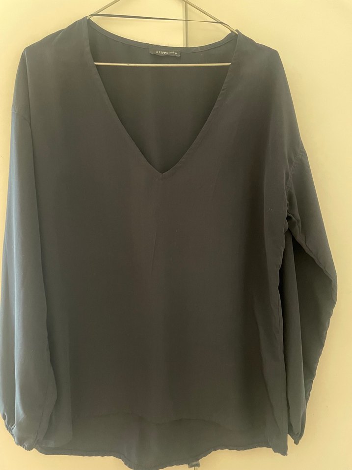 Lacivert V Yaka Salaş Kadın Afrodit Bluz
