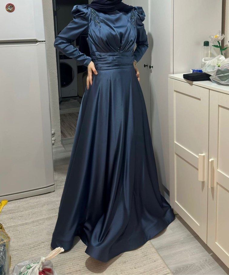 Ürünü 1 kez sözümde kullandım 40 beden fakat 50 55 kilo arası rahatla giyebilirim elbise belden boldu biraz daralttım boydan kısalttım giyen kişi 52 kilo 1.65 boyunda altında topuklu ayakkabı yok