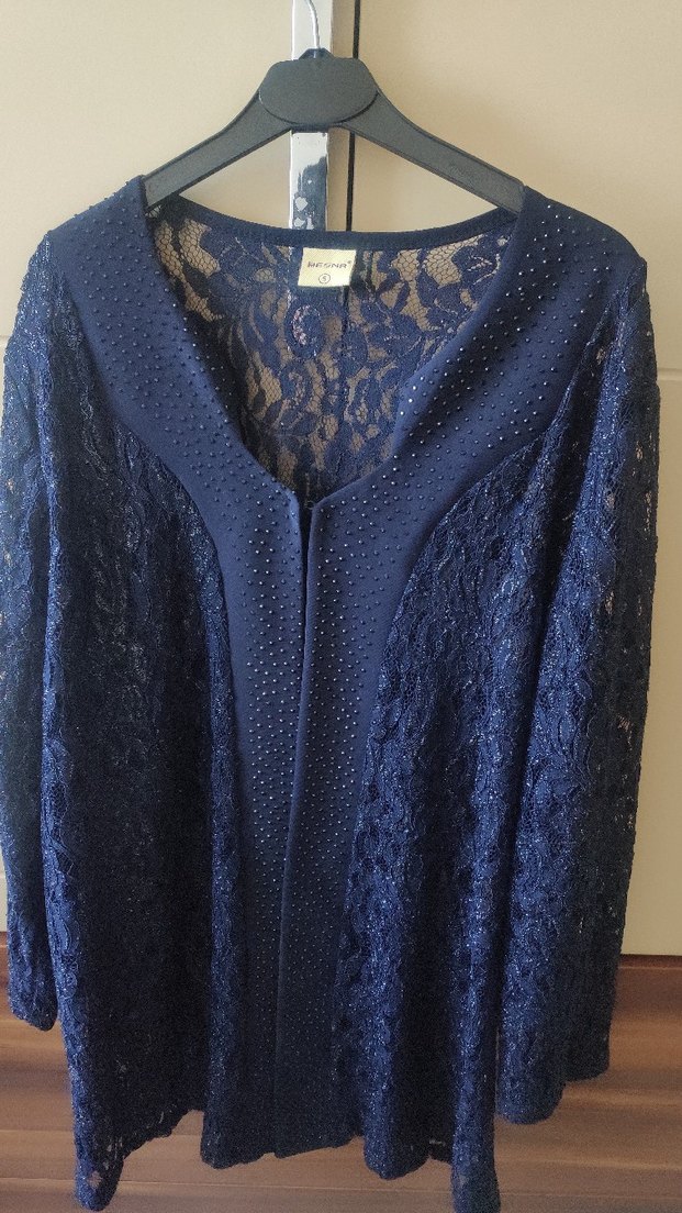 Lacivert uzun kollu, V yakalı ve dantel detaylı hırka