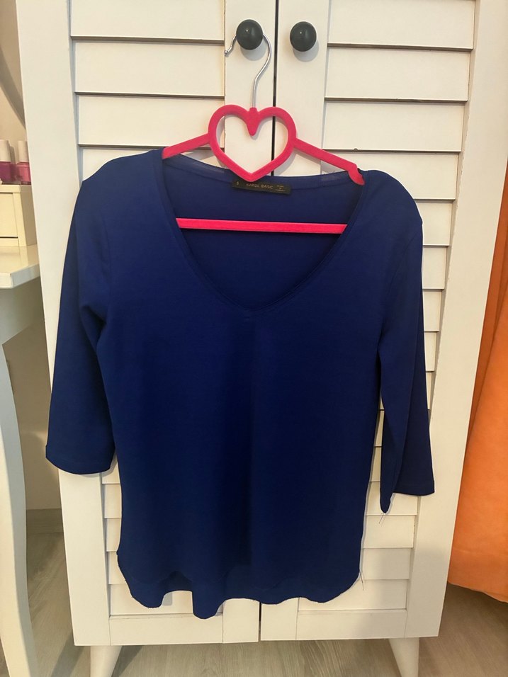 Lacivert V Yaka Uzun Kollu Tişört