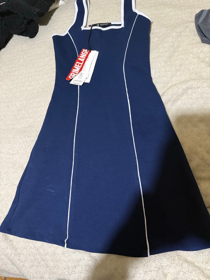 Lacivert, kolsuz kalem elbise, V yaka ve elastik detaylarla sportif ve rahat şıklık sunar. ♀️