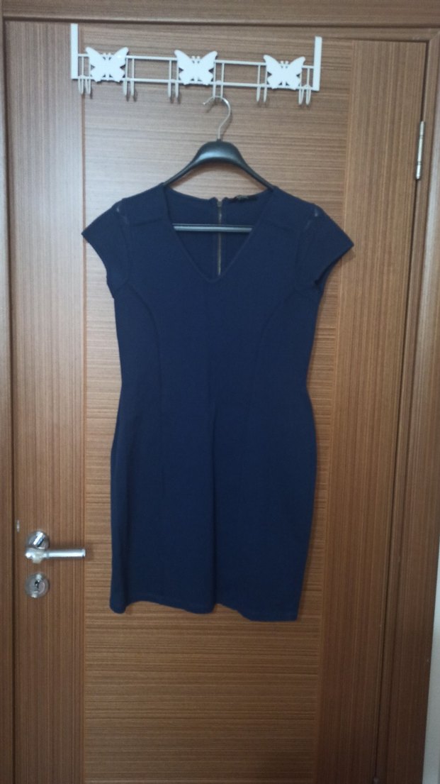 V yakalı, kısa kollu dar kesim midi elbise, yumuşak sentetik kumaştan üretilmiştir. Ofis kullanımı için uygundur. kol detayı mevcuttur.