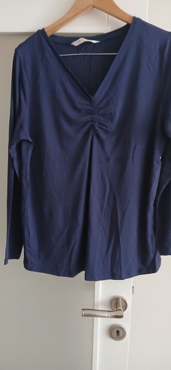 Lacivert V Yakalı Uzun Kollu Keten Bluz boy 67 en 57 sıfır
